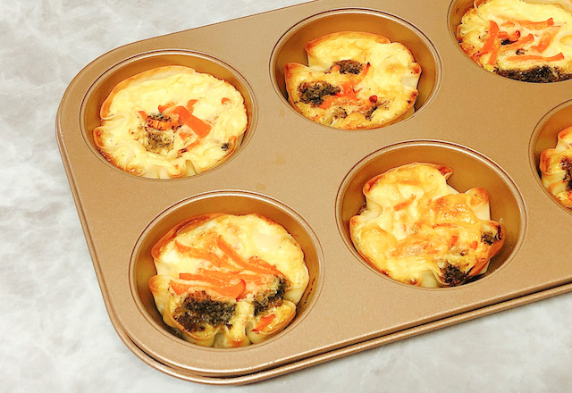 【レシピ】餃子の皮でお手軽に!パイ生地いらずのミニキッシュ♪
