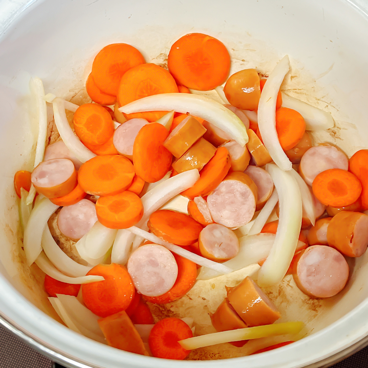 にんじん、玉ねぎ、ウインナーを食べやすく切っておく。